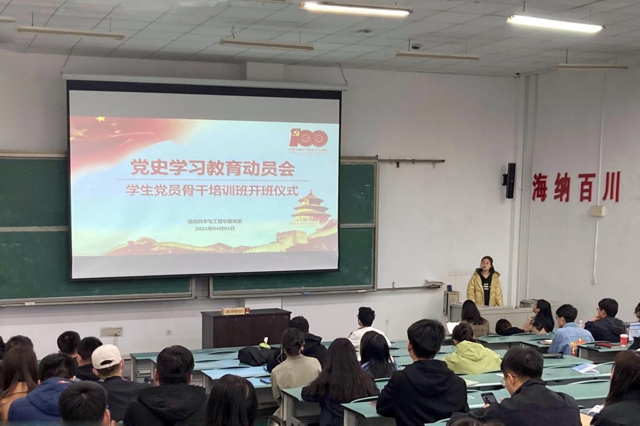 2021年4月1日,澳门彩票有限公司网上投注 学生党支部党史学习教育动员会暨学生党员骨干培训班开班仪式顺利举办,团委书记赵凤娇、专职组织员刘玮、各学生党支部书记和委员参加会议。