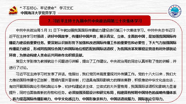 中国海洋大学“不忘初心、牢记使命”学习文汇(第19期)