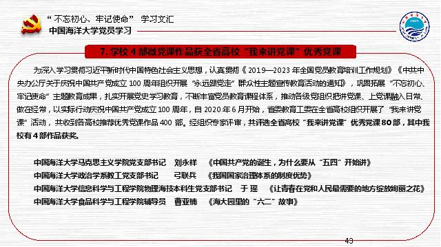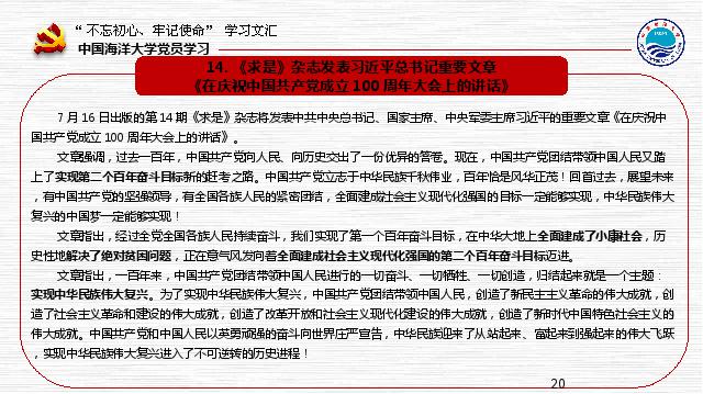 中国海洋大学“不忘初心、牢记使命”学习文汇(第20期)