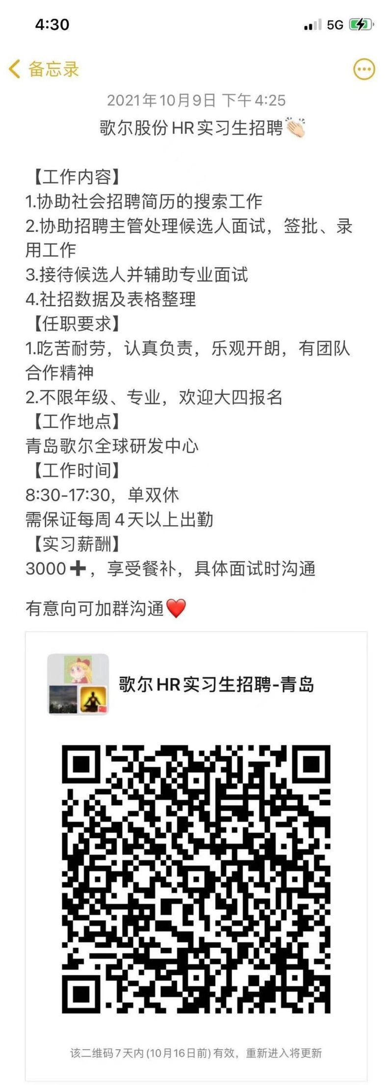 歌尔股份HR实习生