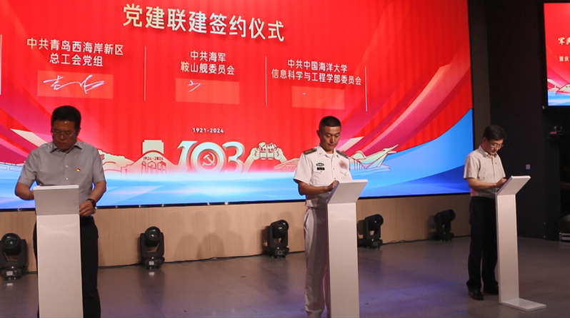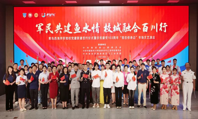 为弘扬伟大建党精神,推动深度发展,促进青岛西海岸军地校之间的紧密合作与交流,7月1日晚,青岛西海岸军地校党建联建签约仪式暨庆祝建党103周年“我在你身边”专场文艺演出在中国海洋大学西海岸校区举行。