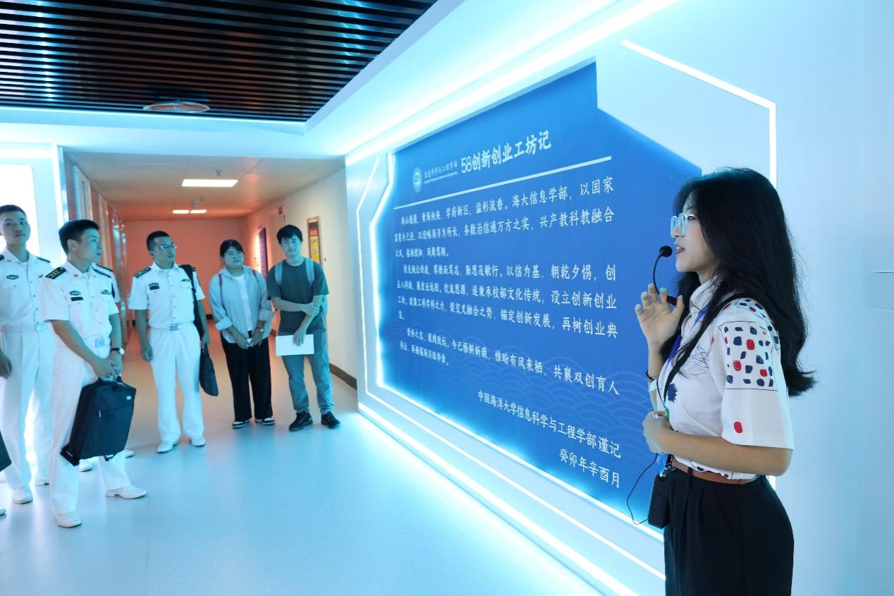 讲座结束后,军地双方代表、中国海洋大学、海军航空大学学生共同参观了58创新创业工坊与大学物理实验中心。