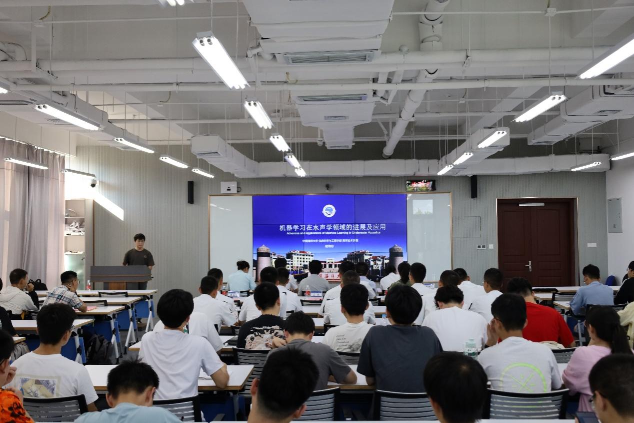 澳门彩票有限公司网上投注 海洋技术学院褚海伦老师作了题为“机器学习在水声学前沿进展及应用”的专题报告。他首先对水声学的发展进行了简要介绍,接着,带领大家回顾了机器学习的发展历程,最后从声源定位、目标检测、水声通信、声场反演等四个方面介绍了机器学习在水声学领域的前沿进展与应用。