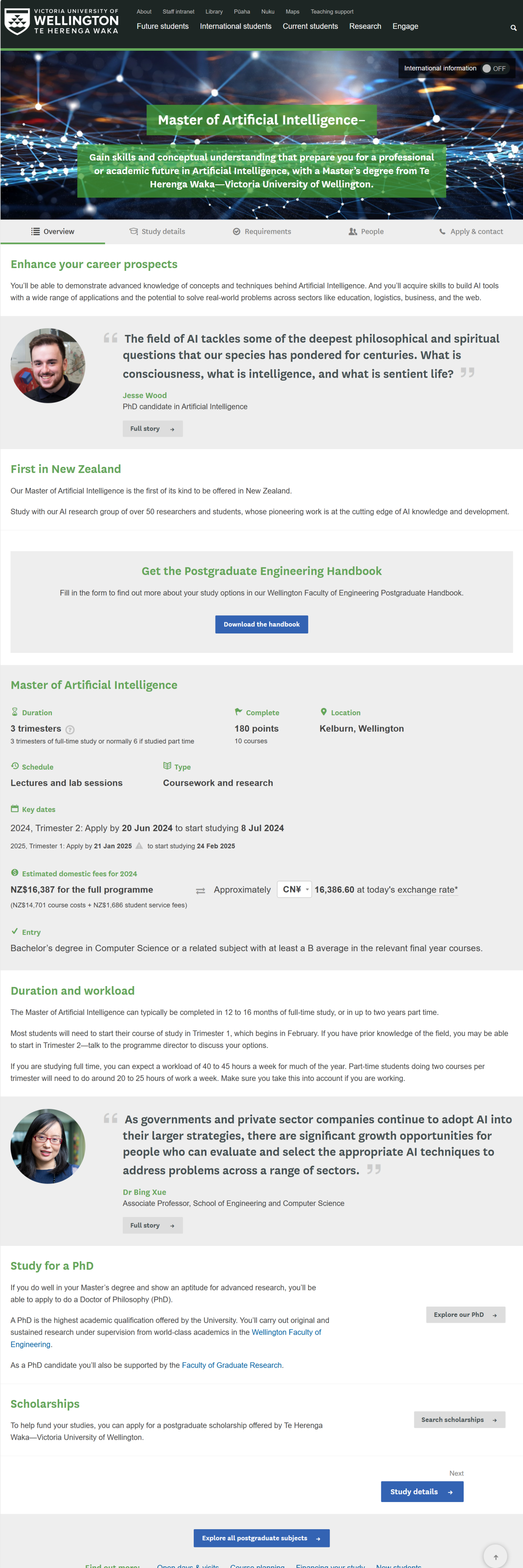 8.通过维大组织的面试、考试等方式达到其语言要求。应在维大入学通知书(或正式邀请信)中注明或单独出具证明。具体英语要求以维大最新规定为准,可参考://www.wgtn.ac.nz/explore/postgraduate-programmes/master-of-artificial-intelligence/requirements?international=true。