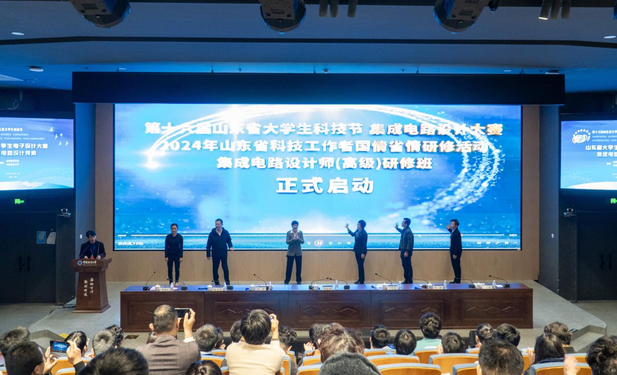 活动期间,还举办了山东省科技工作者国情省情系列研修活动-集成电路设计师(高级)研修班,本次研修班邀请了集成电路领域的领军企业专家进行专题讲座,涵盖数字集成电路设计与实践、集成电路微纳器件设计制造与实践、半导体微纳器件测试与实践、集成电路保护事务等多个前沿议题。此外,还特别邀请了山东省科学家精神报告团为本次培训做专题讲座,旨在激励广大青年学子以科学家为榜样,矢志不渝地追求科学真理、勇攀科学高峰。