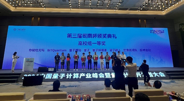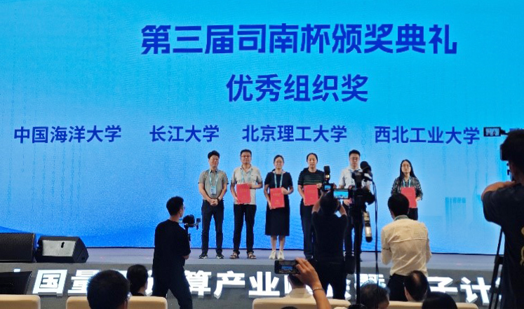 “司南杯”量子计算编程挑战赛是目前国内规模最大的量子计算竞赛,由中国计算机学会(CCF)主办,CCF量子计算专委会和本源量子等单位承办,每年国内外高校参赛队伍近千个。大赛设高校组(本科生)和专业组(对象不限),专业组通常设多个赛道。高校组分别设特、一、二、三等奖5、10、15、20个,获奖者还可获得数千元不等的奖金。专业组设奖数量更少,奖金数万元不等。中国海洋大学在已举办的3届大赛中均成绩优异,获奖等级和数量名列全国高校前茅。