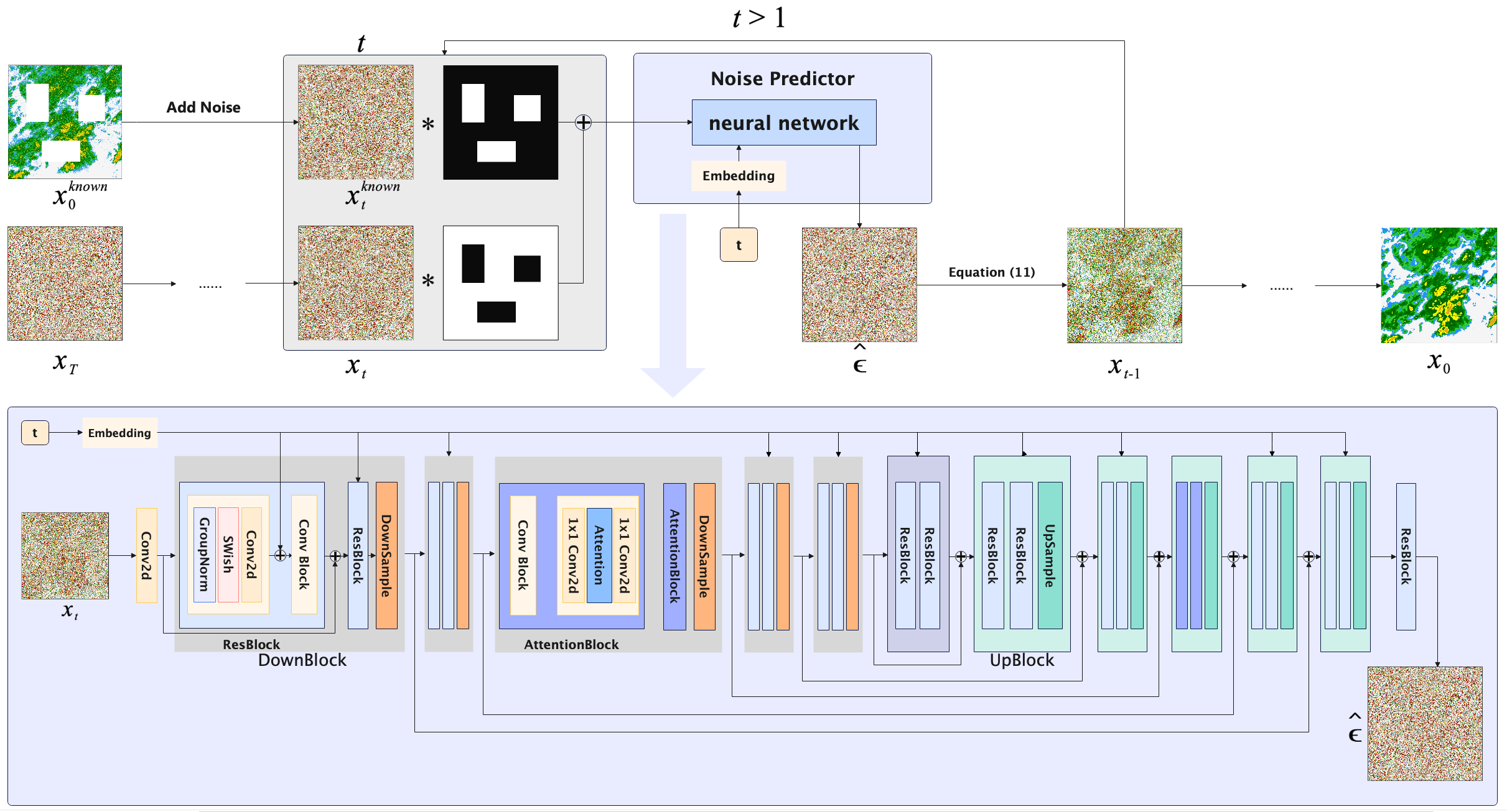 澳门彩票有限公司网上投注 张巍教授和董军宇教授团队在ISPRS Journal of Photogrammetry and Remote Sensing和IEEE Journal of Selected Topics in Applied Earth Observations and Remote Sensing等TOP期刊上发表了系列人工智能天气雷达补全的研究论文。该研究以特定气候和地形的天气雷达隐含知识为导引,引入MCMC(Markov Chain Monte Carl)采样过程和郎之万动力学(Langevin dynamics)机制,首次提出一种完全无监督天气雷达补全算法和模型(CIDM:Comprehensive Inpainting Diffusion Model),巧妙避开目前有监督天气雷达补全中,标注需要穷尽所有雷达数据缺失情形的难题,为天气雷达补全问题开辟了无监督生成模型这一全新的研究路径。