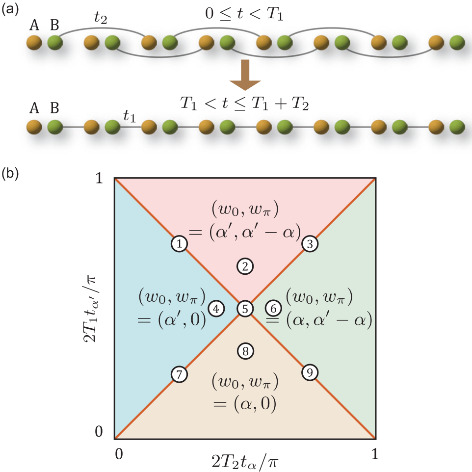 Floquet马约拉纳链的晶格模型(a)与拓扑相图(b)