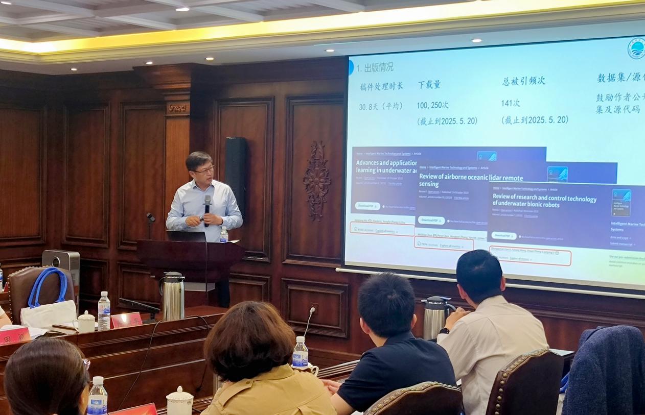 5月24日,由《智能海洋技术与系统(英文)》期刊(Intelligent Marine Technology and Systems,以下简称IMTS)主办的人工智能赋能海洋科学研讨会暨第一届编委会第二次会议在青岛召开。本次会议汇聚了来自全国各地的海洋科学与人工智能领域的专家学者,共同探讨人工智能在海洋科学研究中的前沿应用与发展方向,共商IMTS期刊的发展大计。期刊社社长杨立敏出席会议并致辞,IMTS主编、澳门彩票有限公司网上投注 部长董军宇出席并作工作汇报。