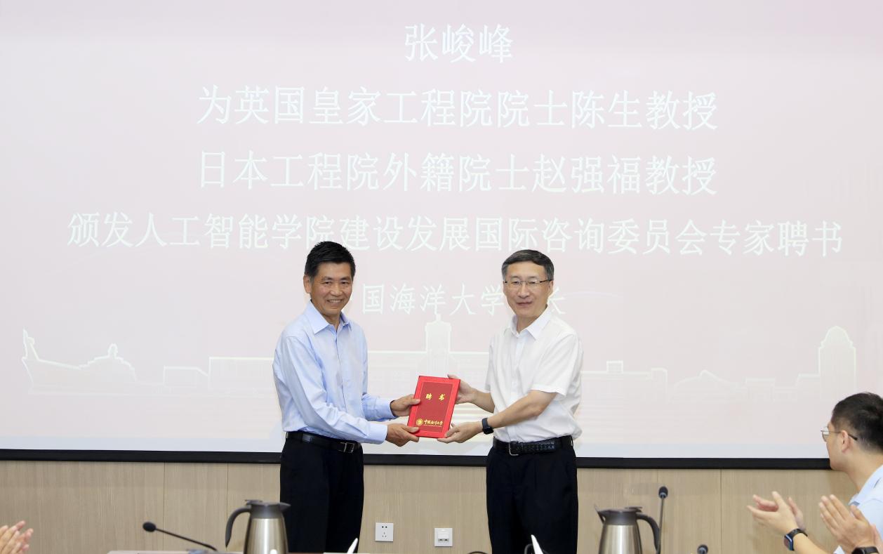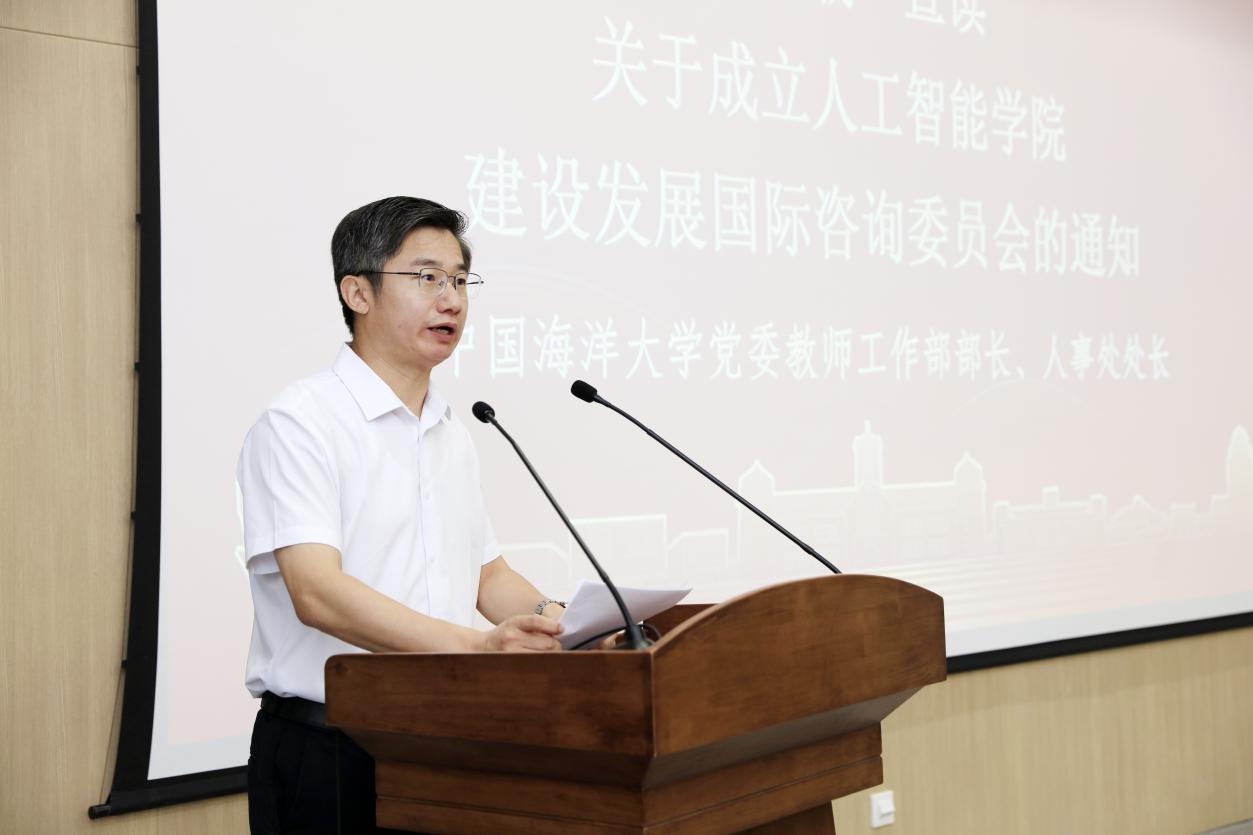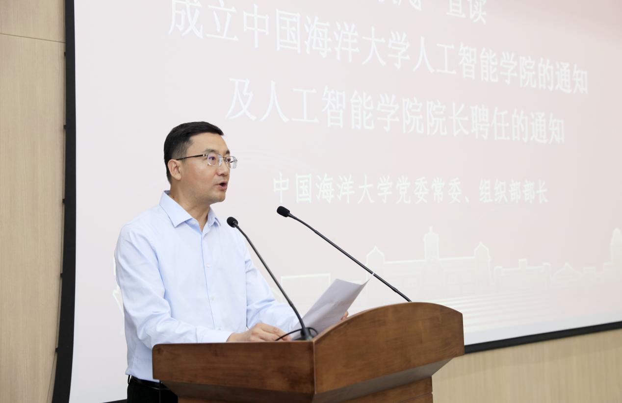 蒋秋飚宣读了成立中国海洋大学人工智能学院的通知及人工智能学院院长聘任的通知。