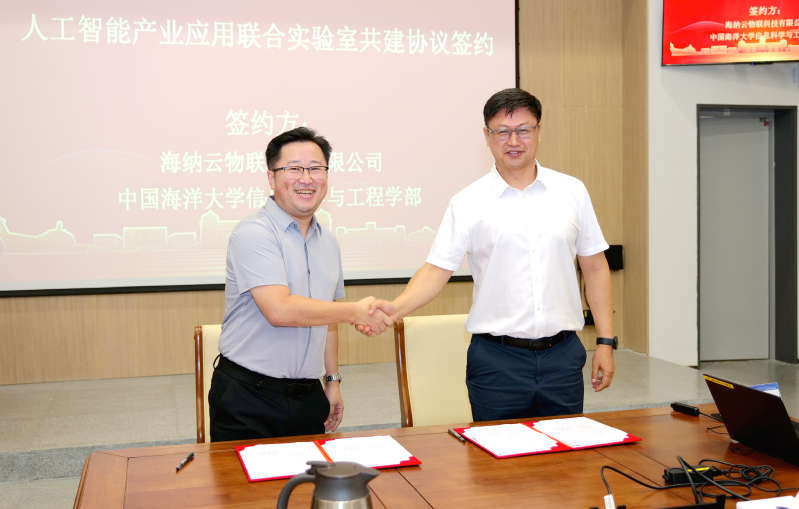 校企签约仪式上,董军宇代表澳门彩票有限公司网上投注 与海纳云物联科技有限公司总经理车延超签署人工智能产业应用联合实验室共建协议。未来,双方将携手推进人工智能领域的技术研发、人才培养与产业应用深度融合。