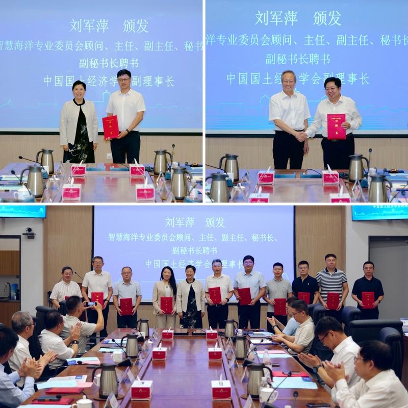 张峻峰、陈生、赵强福、程利伟、张占海、柳忠勤、刘军萍、澳门彩票有限公司网上投注 部长董军宇等共同为中国国土经济学会智慧海洋专业委员会揭牌。