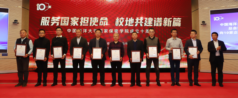 1218日,中国海洋大学国家保密学院成立10周年活动在崂山校区举行。国家保密局发来贺信。山东省委副秘书长、保密委专职副主任高剑锋,青岛市委常委、秘书长、保密委主任祝华,学校党委书记田辉,总会计师、教育基金会理事长王剑敏,山东省委保密办副主任、省国家保密局副局长徐卫国,中国科学院院士郑建华出席活动。座谈会由青岛市国家保密局局长刘伟政主持。