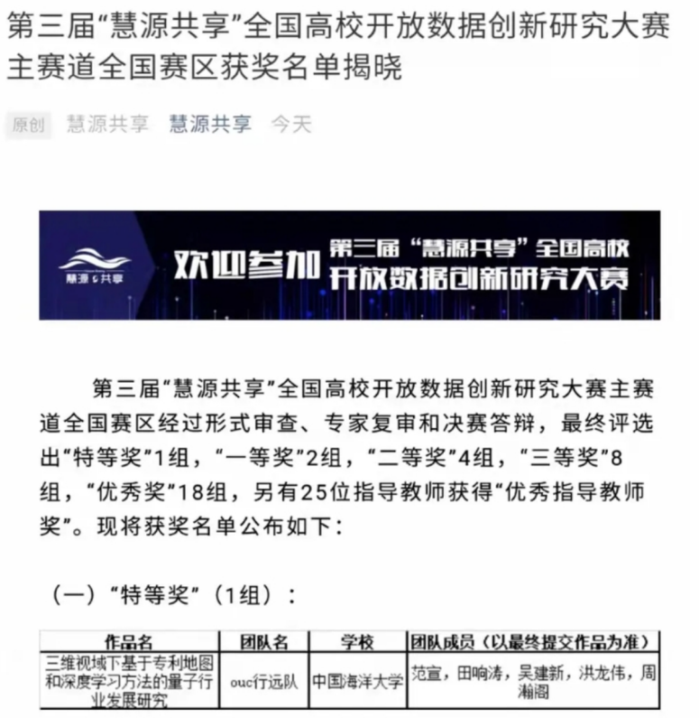 Students from the Faculty of Information Science and Engineering at Ocean University of China Wins National First Prize in the 3rd National Open Data Innovation and Research Competition.