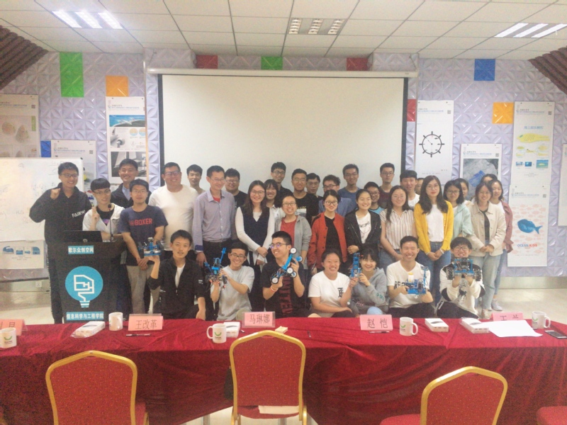 “青春海大·创客未来”中国海洋大学第二届大学生创客马拉松比赛于5月26 日在信息科学与工程学院歌尔众创空间举办,比赛要求选手围绕“智·跨越”这一开放式主题,使用主办方提供的M-block机器人套件,结合机械结构,工业设计、电子电路、计算机编程等相关专业知识,使创意变成现实,以极简的原型产品展现。最终共有6支团队获奖.
