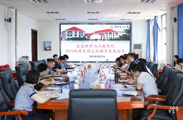 2019年8月22日中午12:30,信息科学与工程学院2019级新生班主任辅导员见面会在信息学院北楼A423顺利举行。本次见面会由学院党委副书记于杰主持,团委书记赵凤娇、部分辅导员及2019级新生班主任出席了此次会议。
