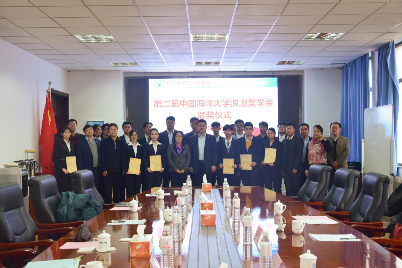 信息科学与工程学院党委副书记于杰主持颁奖仪式,副院长王晓东宣读了《关于颁发第二届中国海洋大学浪潮奖学金的决定》。2017级计算机系统结构专业孙锦璇同学代表获奖学生发言。