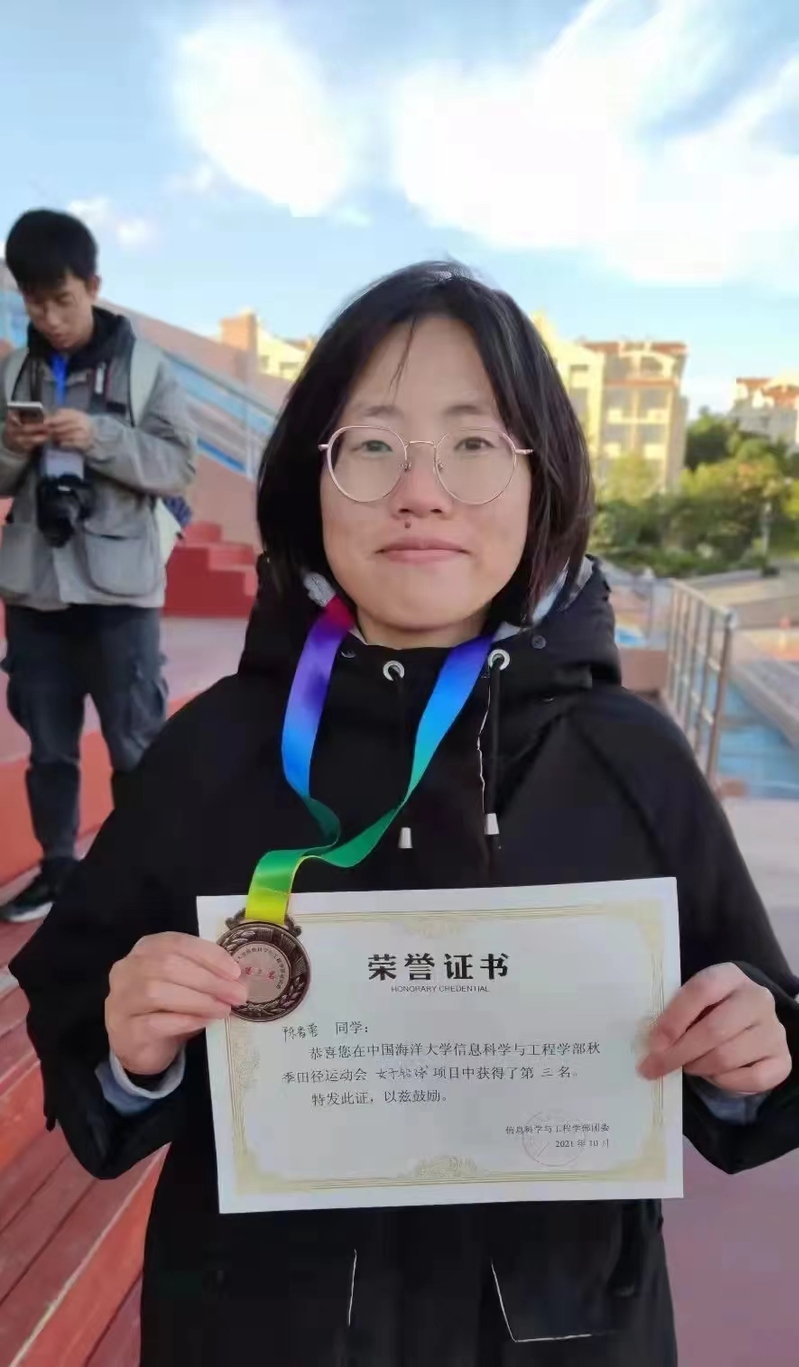 陈香蓉,中共预备党员,2020级通信工程专业本科生,目前担任2020级电子信息类1班团支书,曾获中国海洋大学社会实践奖学金、“优秀团员”荣誉称号。