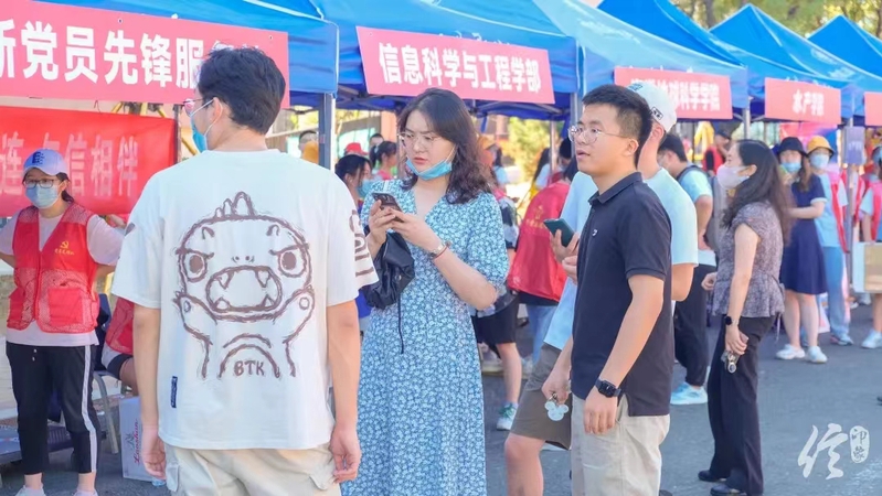 8月17日,按照疫情防控要求,省外的本科新生已经入校。为迎接小水滴们顺利入海,澳门彩票有限公司网上投注 的“大”水滴们组成了志愿者队伍,在“入海口”处进行着迎新的工作。来自祖国大江南北的小水滴们也将在这个热情、进取的信息大家庭里开启求学的新篇章。
