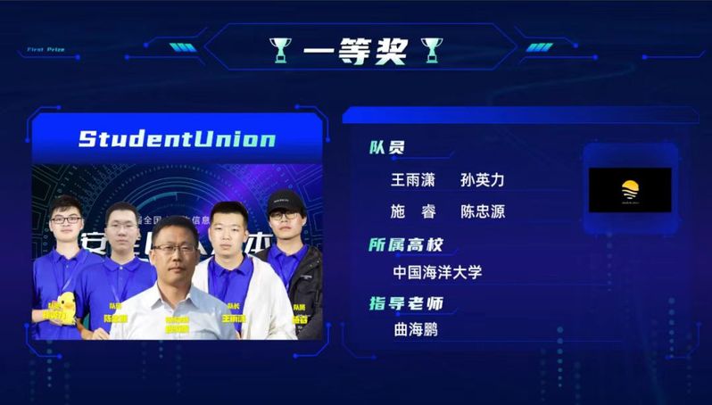 全国大学生信息安全竞赛是我国级别最高、覆盖范围最广、影响力最大的大学生网络安全竞赛。本届比赛共吸引了全国各大高校2218支队伍报名参赛,经过线上初赛和分区赛层层选拔,最后遴选出82支优秀队伍入围全国总决赛。最终,共22名队伍获全国一等奖,由教育部高等学校网络空间安全专业教学指导委员会秘书长封化民教授颁奖。
