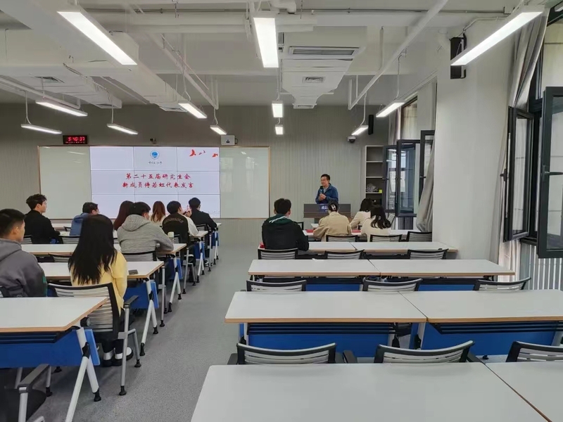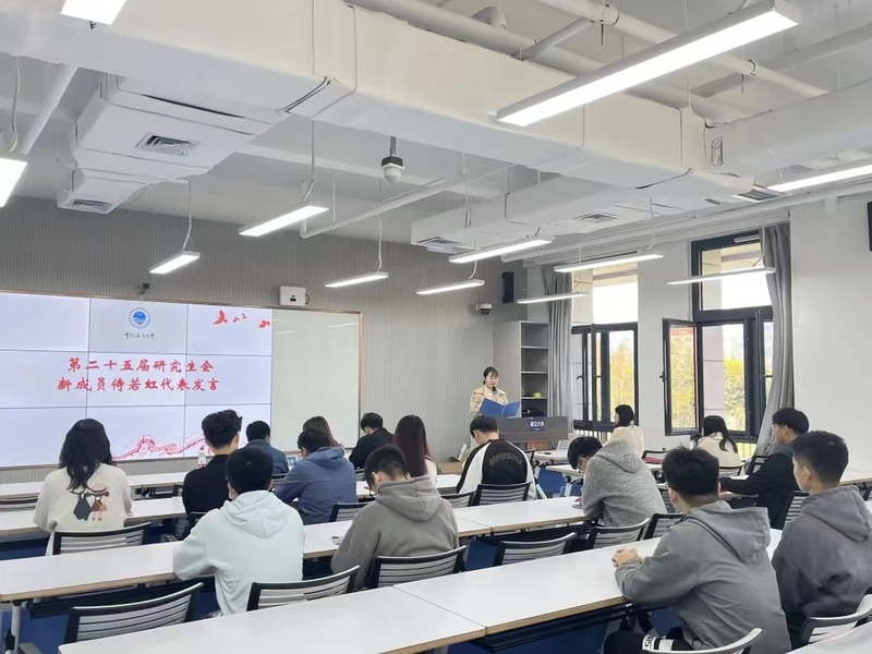 随后,第二十五届研究生会新成员代表侍若虹发言,从考研至海大到生活在海大,她解释了作为一名海大新青年为什么加入研会,她认为研会是一个组织,更是一个平台,研会给信息学子们提供了发光发热的机会,她坚定了向学长学姐学习的决心,展望研会未来,表达了全体成员在新一年各方面取得突破的信心。